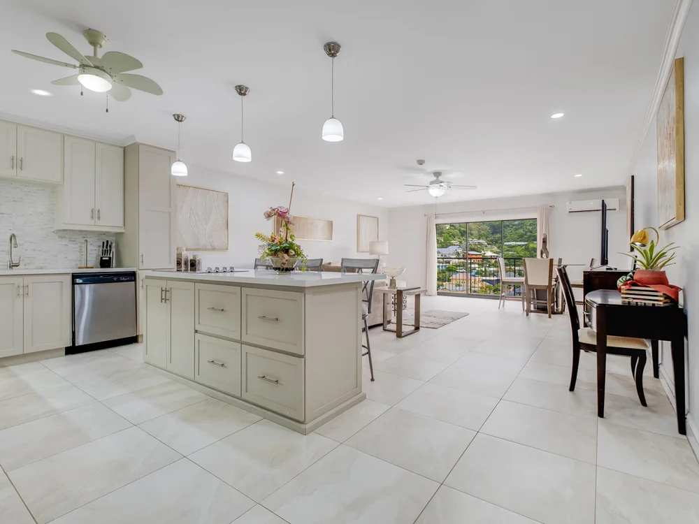 A vast, striking piece in the center of the cooking area, whether it's a classic chandelier or something that reflects your diverse taste, will make a statement.